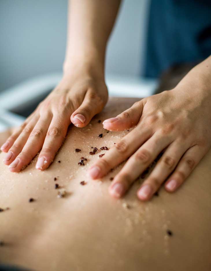 FÜR WEICHE, GEPFLEGTE HAUT! Ein reinigendes Peeling aus Traubenkernsalz und Traubenkernöl mit einer entspannenden Dusche. Die ideale…